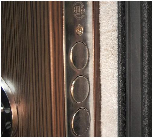 Магнитный уплотнитель появился недавно, но все чаще употребляется при изготовлении железных дверей от производителя. Магнитные уплотнители устанавливают на дверях холодильника либо морозильной камеры. Принцип действия уплотнителя основан на притягивании постоянных магнитов посредством полюсов притяжения. На железных дверях устанавливают тройной контур магнитного уплотнителя. Первые два контура находятся конкретно на двери, а третий — на дверной коробке. Магнитные уплотнители имеют недостаток: при наличии сильного притяжения магнитов, такую дверь будет не легко открыть ребенку либо пожилому человеку, а при наличии не сильный магнитов — дверь не будет отвечать всем требованиям герметизации и шумоизоляции.