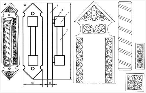 Экземпляр резной ручки гармонично впишется в интерьер, выдержанный в классическом народном стиле. Рукоятка красиво дополнит дверь, стилизированную под старину. Конструкция модели включает 6 элементов: