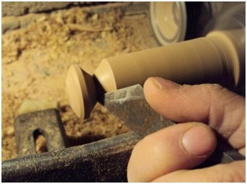- Подровнять основание ручки прямым резаком, а поверхность обработать наждачкой. Делая шлифовку принципиально важно не переусердствовать и не через чур надавливать на бумагу, в противном случае возможно обжечь пальцы о вращающиеся элементы и сломать изделие.