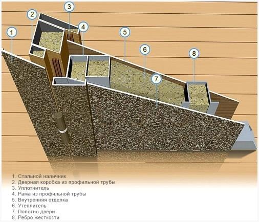 Первый вариант подходит для разборных дверей, в то время, когда два полотна прикреплены к каркасу крепежами. Внутренний способ предусматривает наполнение полости изолирующим материалом.