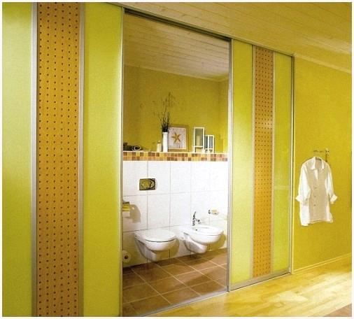 Раздвижные двери в ванную, без сомнений, экономят пространство, их устанавливают там, где пользоваться распашной дверью некомфортно. Их монтаж более сложен, цена – выше, это из-за дорогостоящего роликового механизма и направляющей, закрепляемой в полу. Значительно чаще, их установку доверяют экспертам. При открывании такие двери движутся вдоль стенки.