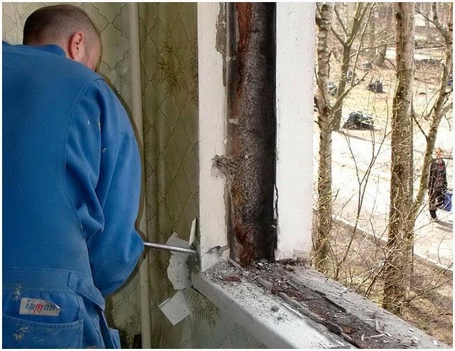 Деревянный подоконник демонтируем аналогичным образом. Цементный — разбиваем ломом, молотком либо любым другим подручным инструментом. Кое-какие предпочитают покинуть подоконник (особенно если он в совершенном состоянии), но учтите, что в таковой ситуации постоянно остаётся громадная щель, которая отражается на неспециализированном впечатлении далеко не лучшим образом.