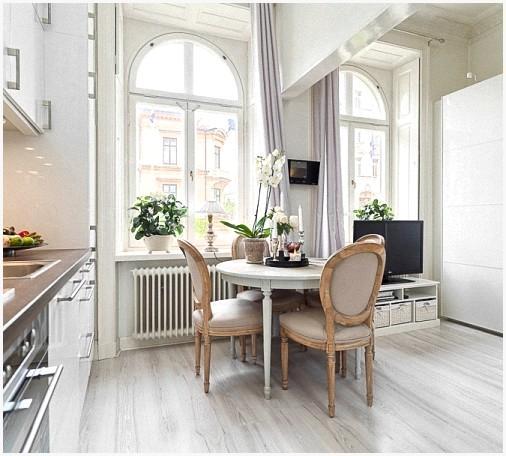 Совет: В случае если в комнате 2 арочных окна с раскрывающимися фрамугами, то наиболее гармонично расположить их симметрично. Но не забывайте, что фрамуга обязана раскрываться не в том направлении, куда «красиво», а где она не мешает доходить к предметам интерьера либо поливать цветы у окна.