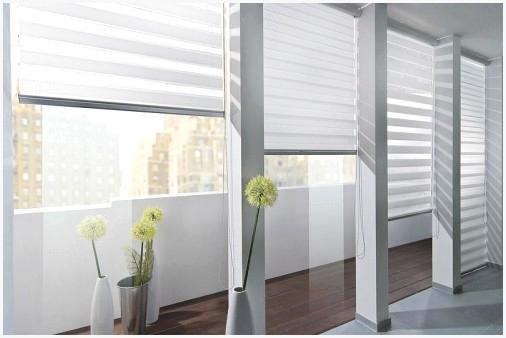 - Жалюзи «день-ночь» — изготавливают из ткани, которая в себе сочетает прозрачные и непрозрачные горизонтальные полосы. Свет, который попадает в помещение, регулируется при помощи смещения прозрачных относительно непрозрачных полос.