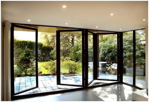 - Раздвижные конструкции типа «гармошка». К ним относится одна из самых популярных разновидностей – портал, воображающий собой дверь-окно, складывающуюся из одного и более полотен;