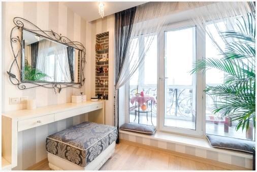 В большинстве случаев французские окна устанавливают так, дабы они выходили на балкон. Наряду с этим принципиально важно учитывать, что площадь застекленного пространства не должна быть больше 10 % площади комнаты. В этом случае может потребоваться перепланировка, поскольку остекление стенки возможно создавать лишь тогда, в то время, когда она не есть несущей.