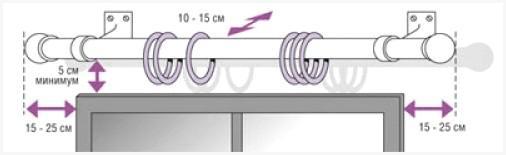 Перед тем, как начать монтаж, нужно убедиться в том, что карниз не помешает открыть окно. Еще один принципиальный момент – дабы штора не ложилась на подоконник, кронштейны должны быть больше по длине его выступающую часть. Нужно взять во внимание и размеры трубы отопления, если она проходит по стенке в месте размещения карниза.