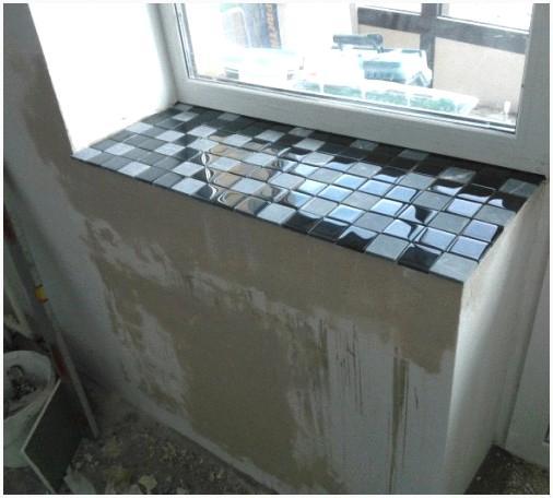 6. Окончательный этап — отделка подоконника: покраска или установка плитки.