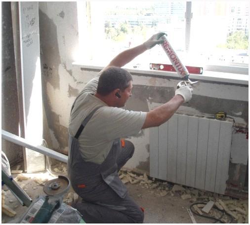 4. Нанесите монтажный клей на поверхность ветхого подоконника.