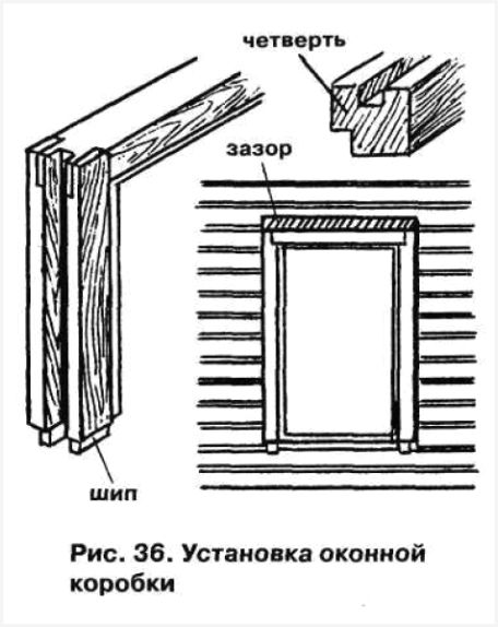 - Коробка, которая монтируется в оконный проем. Она изготавливается из досок размером 5х15 см;