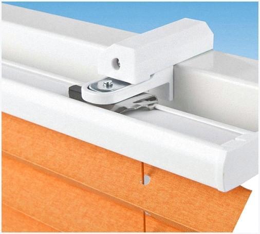 Рассмотрим наиболее простой, самый щадящий для дорогостоящего металлопластикового профиля окон метод монтажа рулонных штор без сверления. Производится таковой монтаж однотипно с отличием лишь для раскрывающихся и «глухих» частей окна. Для створок окон и балконных дверей употребляются кронштейны в форме буквы «Г», каковые надеваются сверху на створку и хорошо фиксируются до щелчка. Кронштейн соединяется с держателем рулонной шторы при помощи того же двухстороннего скотча.
