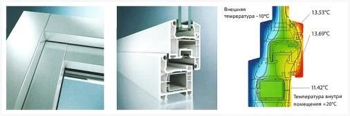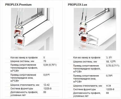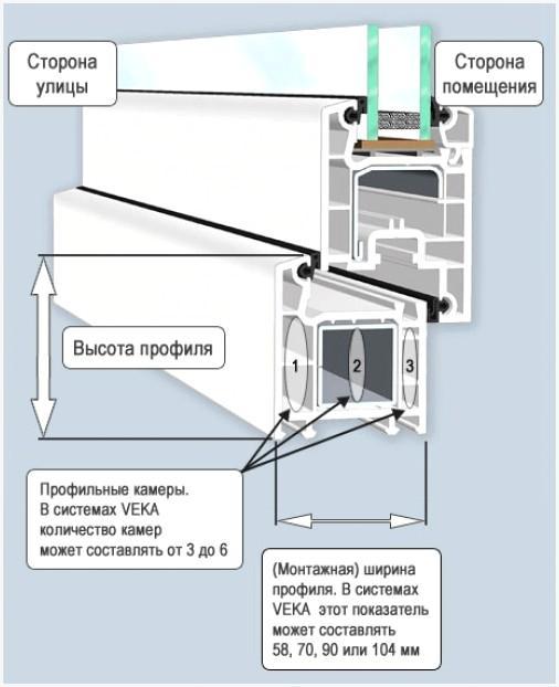 - Конструкции оконных профилей представлены шириной от 60 до 82 мм, количество камер — от 3 до 8.