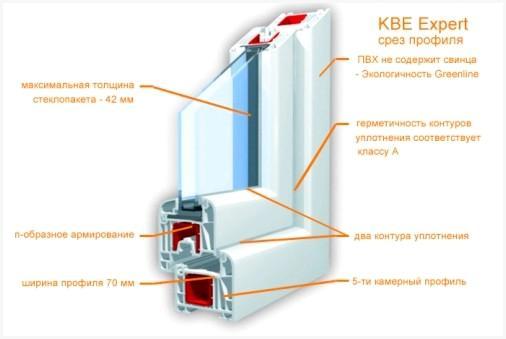 - В профиле КВЕ установлены ребра жесткости, каковые снабжают дополнительную прочность оконной конструкции. Кроме этого повысить жесткость разрешают особые упоры, благодаря которым достигается правильное размещение армирующей железной вставки.