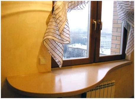— подоконники из ненатурального камня, более дорогой и уместный не для любого интерьера вариант подоконника. Минусами подоконника из ненатурального камня являются не стойкость действию повышенных температур и абразива.