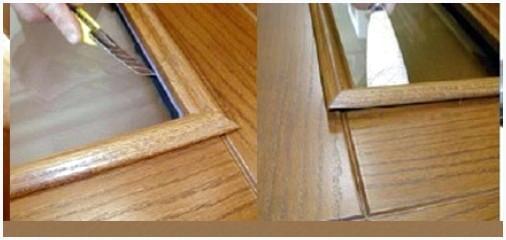 Первым этапом при замене стеклопакета есть демонтаж деревянных штапиков. Применять для данной работы направляться особые пластиковые лопатки.