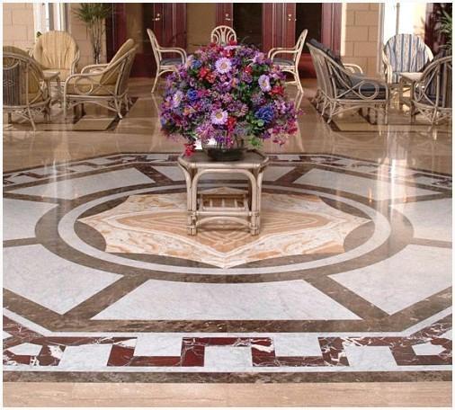 Камины и полы из мрамора постоянно считались показателем очевидной роскоши и изысканного вкуса хозяев дома. Напольная плитка из натурального поделочного камня – необычная визитка шикарной жизни, подчеркивающая статус своих хозяев.
