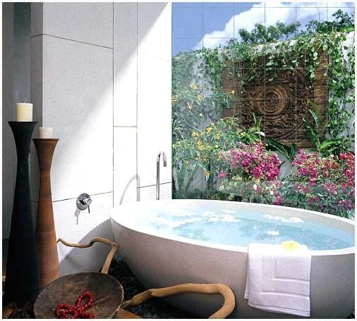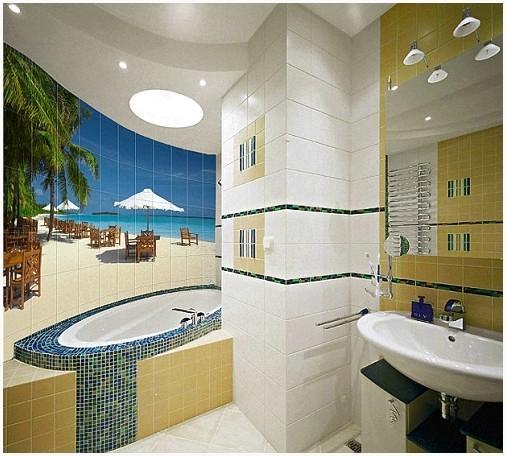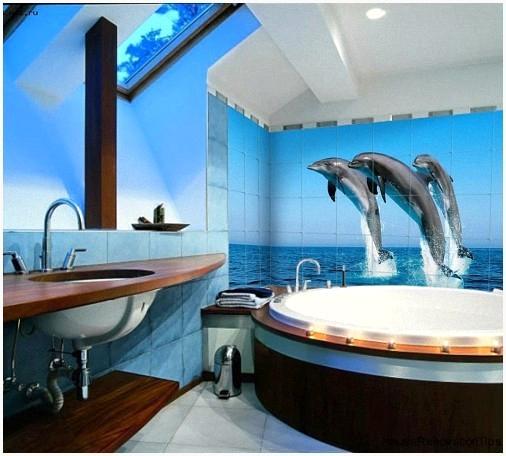 Дабы сделать интерьер ванной комнаты уникальным и необыкновенным употребляется фотоплитка, на которой запечатлены каждые пейзажи, портреты либо фото.