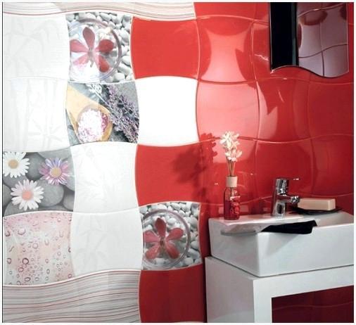 Именно поэтому приему, интерьер выглядит продуманным до мелочей. К примеру, плитка с фоторисунком, расположенная между белой и красной плиткой, имеет в своей цветовой гамме оттенки, схожие с цветами окружающей плитки. За счет этого, не обращая внимания на обилие цветовых оттенков, композиция сохраняет свою целостность и уникальный внешний вид.