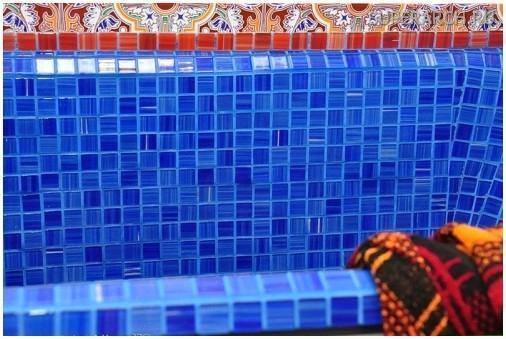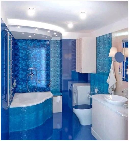 Следующий пример кроме этого иллюстрирует контрастное, но более весёлое сочетание цветов. В помещение, оформленное плиткой цвета ультрамарин, додаёт свежести контрастная белая затирка. Такое сочетание станет совершенным для оформления ванной комнаты и создания оптимистичного настроя.