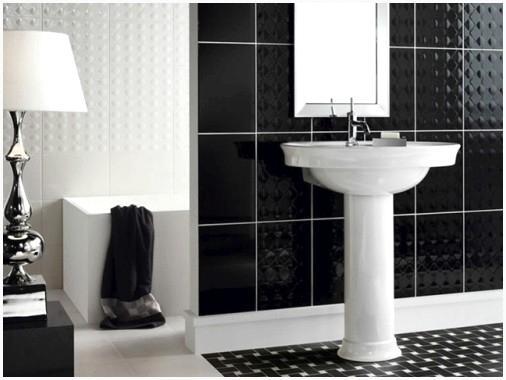 - Дав предпочтение чёрной плитке и затирке того же цвета, вы сможете объединить помещение, но применение чёрных тонов в интерьере помещения будет содействовать его визуальному уменьшению;