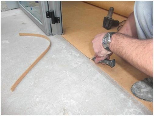 - В случае если этап подготовки, в то время, когда линолеум предварительно расстилался, дабы расправиться, был пропущен, то на этапе подрезки нужно сделать так, дабы край покрытия не доходил до стенки несколько миллиметров. Затем его все равно придется перестать трогать минимум на дни. Линолеум расправится и ляжет ровно по стенке. В случае если по прошествии 24 часов он в каких-то местах будет «горбиться» и упираться в стенки, то его снова же подрезают.