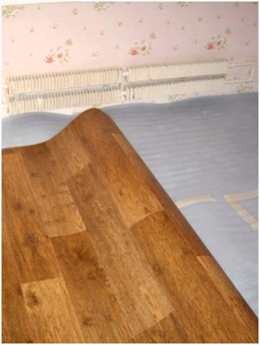 Деревянный пол в полной мере допускается в качестве основания. Сперва избавляются от выпирающих гвоздей, а громадные щели, неровности устраняются методом настилания фанеры (8-12 мм толщиной). Шурупы глубоко утапливаются в ее поверхность, дабы не повредить позже покрытие.