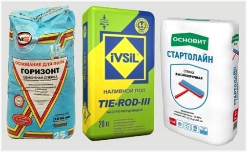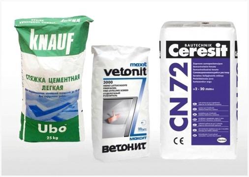 Сухие смеси для стяжки пола разделяются по своему составу и типу применяемого связующего на две многочисленные группы: смеси на базе цемента и составы на базе гипса. Вещества на базе цемента свое использование нашли для выравнивания поверхностей в жилых и публичных постройках при наружных и внутренних работах. Вещества на гипсовой базе употребляются в основном для устройства стяжек в построек.