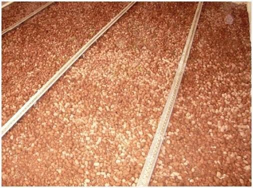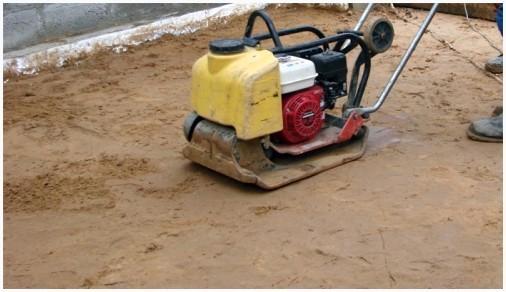 Определяется нулевой уровень будущего пола. В большинстве случаев, за базу принимают «порог» гаража. Грунт выбирается приблизительно на 50 см, более точные расчеты производятся следующим образом: 10-15 см «уйдут» на песчаную подушку, 10-15 см – щебеночный слой, 10 см – сечение бруса (лаги) и плюсуется толщина половой доски 2,5-3 см. Любая прослойка увлажняется и уплотняется. Для этого вовсе не обязательно использовать особую технику. Тут подойдет самодельный инструмент, где к торцу бруска сечением 50х50 мм крепится гвоздями либо шурупами квадратный отрезок доски, который будет употребляться в качестве подошвы.