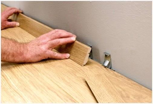 Система крепления шпонированного плинтуса является особые клипсы, на каковые конкретно и будет «наряжаться» сам плинтус. Вероятен крепеж для того чтобы декоративного элемента на «жидкие гвозди». К тому же у вас нет необходимости применять при монтаже шпонированного плинтуса заглушек и уголков.