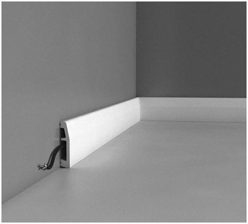 Плинтус гибкий под покраску из полиуретана отличается хорошими эксплуатационными чертами и легко монтируется в помещении, повторяя его форму. Из-за гибкости полиуретанового плинтуса он способен скрыть самые громадные неровности стен. Помимо этого, изделия характеризуется наличием пазов, в которых устанавливают провода. Среди преимуществ гибкого плинтуса под покраску отметим: