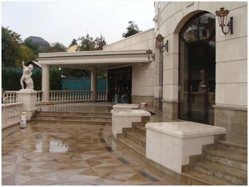 Не считая оформления интерьера активно используется гранитное покрытие для пола на террасе, беседок, двориков патио и территории около бассейна.