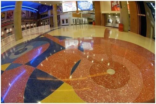 Наливной пол с гранитной крошкой – достойная альтернатива классической облицовке из плитки. Ему присущи многие характеристики гранитного покрытия, но он легче весит и разрешает отобразить на полу любой рисунок, комбинируя составы различных цветов.
