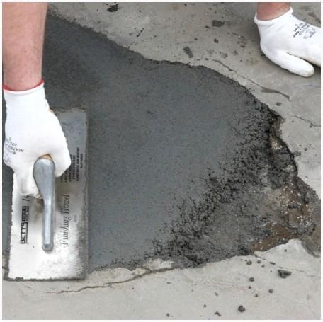 - Потом шепетильно убирают целый мусор и появившуюся пыль мокрой тряпкой. По окончании подсыхания поверхность обрабатывают проникающей грунтовкой. После этого разводят цементный раствор. В случае если объем работ маленькой, то комфортно приобрести уже расфасованную смесь для ремонта, в которую необходимо лишь добавить воды. Ею заполняют подготовленный участок и разравнивают шпателем.