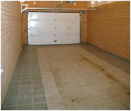 - В случае если имеется желание сделать гараж прекрасным и закрыть серый цементный пол, то оптимальнее выбрать клинкерную либо керамогранитную плитку. При покупке нужно уделить время ее поверхности, она должна быть шершавая и нескользкая. Это полностью морозостойкий материал, который не опасается жидкости. В случае растрескивания отдельных элементов их возможно заменить без сложного ремонта всего напольного покрытия. К тому же, в случае если основание неровное, как раз посредством плитки и клея на базе цемента его легко выровнять. К недостаткам относят лишь большую цену.
