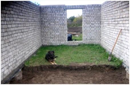 - В первую очередь роют котлован по всей площади гаража на глубину 0,5-1 м. В него насыпают щебень, делающий роль дренажа, и разравнивают. Слой должен быть не меньше 40 см.