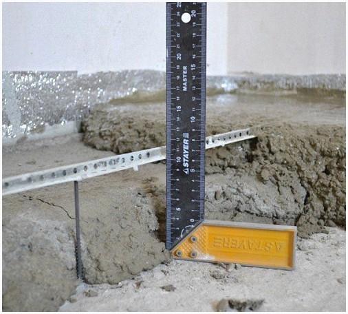 Для измерения ровности полу, линейка с уровнем прикладывается к нему близко по всему периметру комнаты. Существует возможность отбивания высоты пола под стяжку. При таких условиях, уровень направляться прикладывать к стенке и посредством карандаша необходимо чертить по периметру высоту будущего пола.