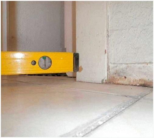 При наличии на полу уклона, рекомендуется выставить уровень на бруски и выяснить его место нахождения.