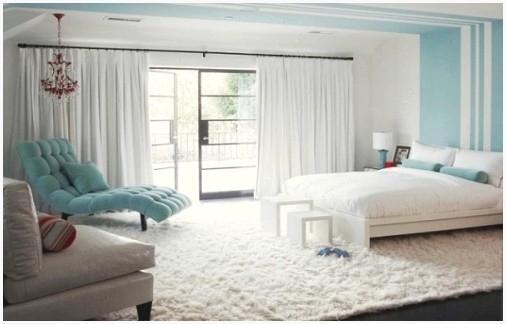 - Спальня – это комната не интенсивного применения. Ковровое покрытие в спальне, в отличие от других помещений, менее подвергается загрязнению. Оно должно иметь антистатические свойства, быть привлекательным на вид и на ощупь. Для применения в спальне подойдет большой ковролин. Рекомендуется выбирать материал, который не накапливает пыль (кроме этого как и для детской) и который легко чистится, из смешанных либо натуральных волокон маленькой густоты.