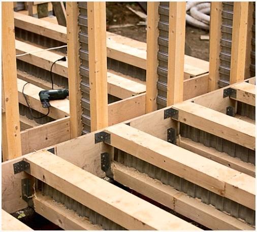 В случае если указанного размера балок вам отыскать не удалось, то вероятен вариант их независимого сооружения с применением простых досок. Наряду с этим, они укладываются шахматным порядком, соединяясь между собой посредством гвоздей.