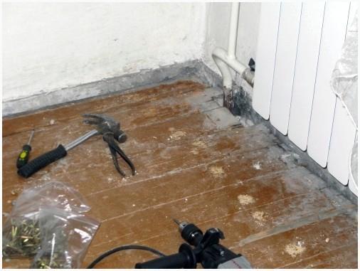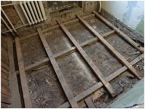 - Между лагами ветхого напольного покрытия довольно часто находится большое количество мусора, которое нужно будет утилизировать.