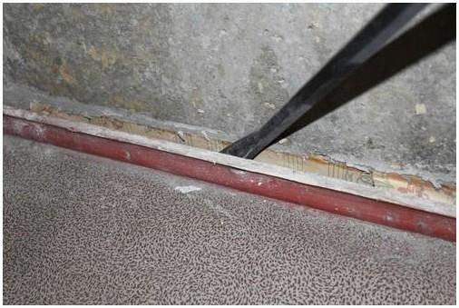 - Снятие затевать с угла комнаты, в противном случае плинтус начнет напрягаться и сломается. Между полом и плинтусом вставить острый конец гвоздодера. Приложив усилия извлечь первый гвоздь наполовину из плинтуса.