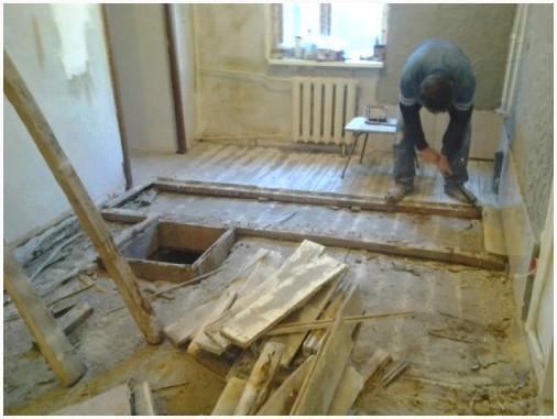 Демонтаж ветхих деревянных полов имеет кое-какие особенности: