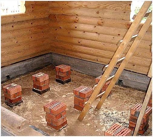 Бревна укладываются в пазы, каковые готовятся в начале строительства, наряду с этим расстояние между стеной и лагами должно составлять приблизительно от 2 до 3 мм. Это разъясняется методом укладки чернового пола в деревянном доме, который не будет скрипеть в ходе эксплуатации. Доски обрабатывают антисептическими средствами либо битумом, дабы избежать проникновения вредителей, плесени и грибка. Пазы не являются единственным предметом крепления, а исходя из этого должны иметь иные опорные элементы, к примеру, кирпичные столбы.