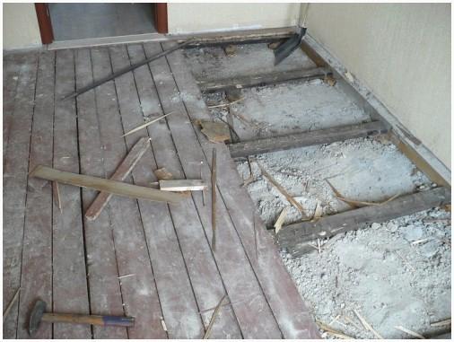 К числу подготовительных мероприятий возможно отнести демонтаж ветхого напольного покрытия и выравнивание основания.