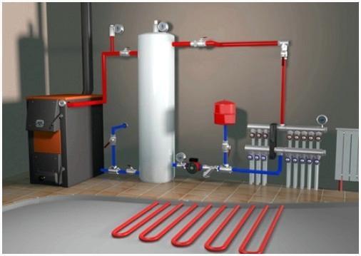 - Водонагревательный котел. Агрегат должен иметь мощность, достаточную для подогрева теплоносителя в пиковые часы работы контуров. Ориентировочно, это суммарная мощность всех тепловых полов, повышенная на 15-20%.