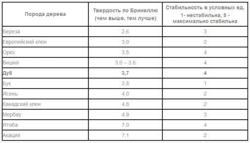 - Дуб – прочный, не подвергается деформации и устойчив к влажности;
