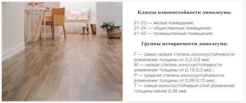 Исходя из назначения, линолеум делится на четыре группы: