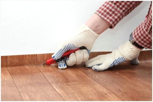 - Демонтировать плинтуса, убрать целый мусор и высушить поверхность;