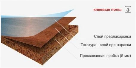 — клеящееся пробковое покрытие на пол: состоит такое покрытие из нескольких слоев пробки: нижний слой – прессованная пробка, верхний – цельный шпон. Неспециализированная толщина панелей не редкость 4мм, 6 мм.,