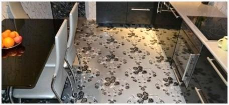 — термостойкий и не горючий пол: что, в условиях кухни и готовки – громадной плюс,